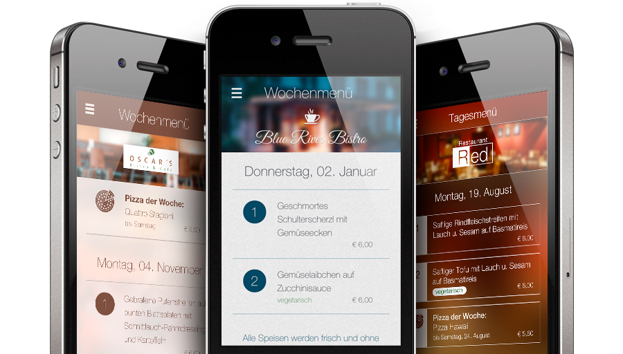 MenüApp ab sofort Smartphone Apps speziell für Restaurants an. Durch eine eigene mobile App können Restaurants ihre Mittagsmenüs und Wochenangebote direkt auf die Mobiltelefone ihrer Gäste bringen.